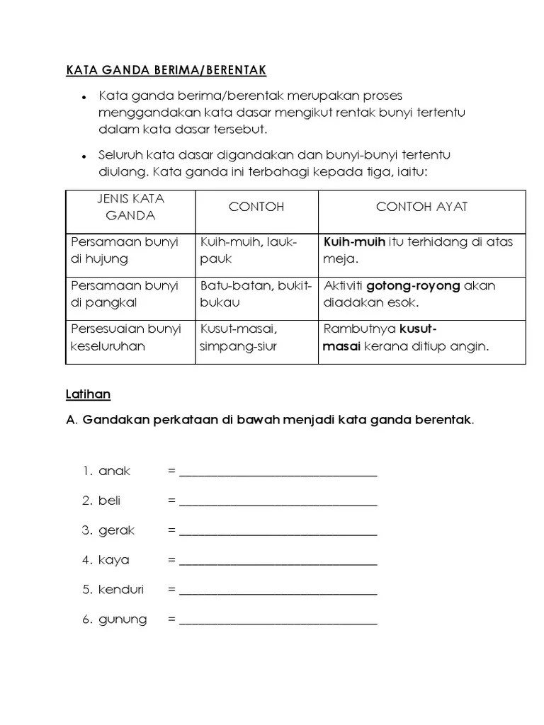 Contoh ayat kata ganda contoh soal dan materi pelajaran 1.